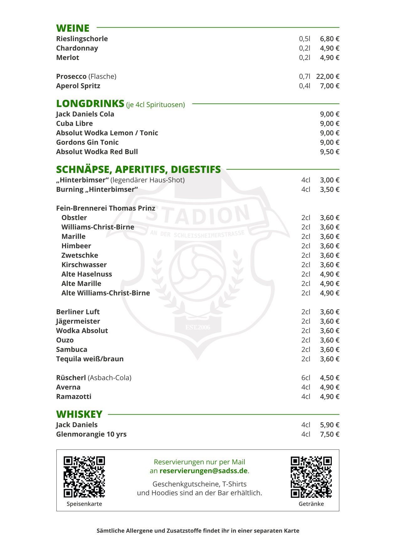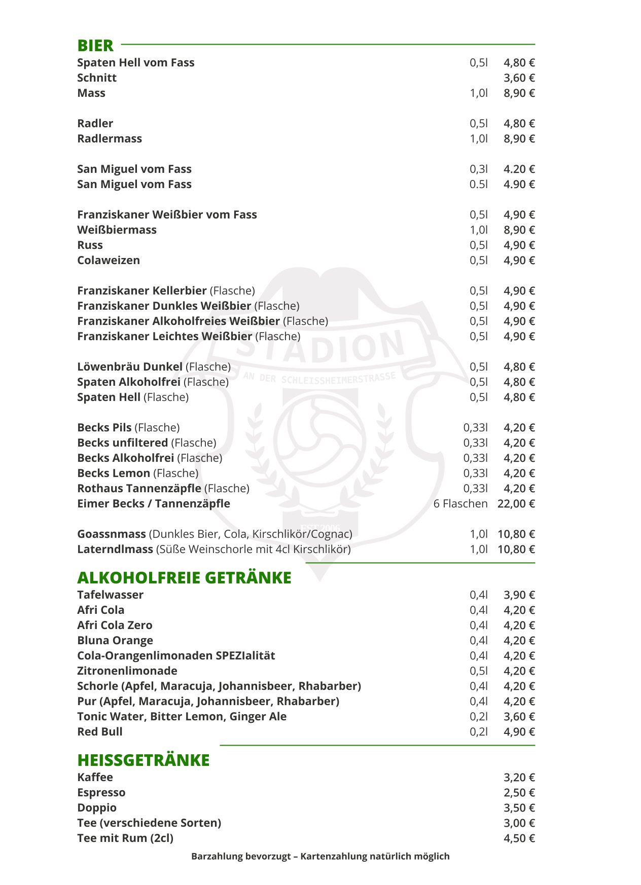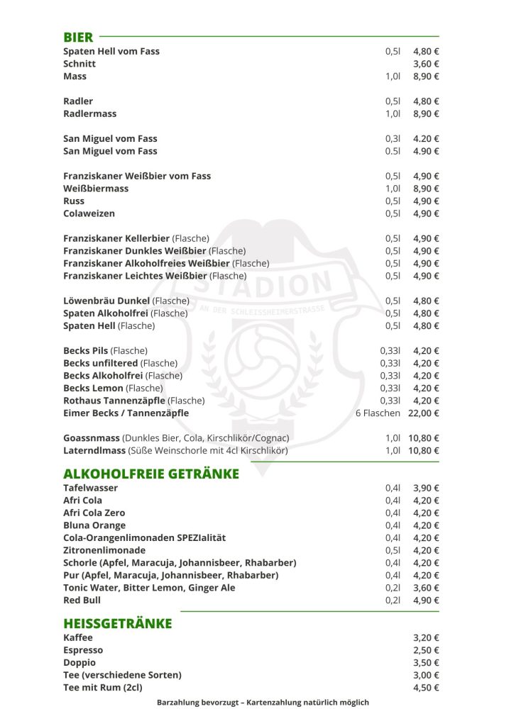 STADION GETRÄNKEKARTE